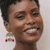 Longueur de la boucle d’oreilles  : 5 cm   –   Longueur de la partie suspendue : 4 cm  Attache : 1 cm