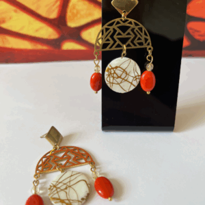 Boucles d’oreilles en forme de gouttes réalisées avec des perles en verre, des agates teintées suspendues à une attache en acier inoxydable. Longueur : 4 cm